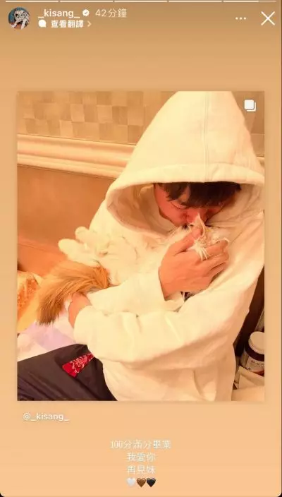 AK以長文記錄了他由小學到現在成為歌手,花花在這20年期間陪伴他成長的一點一滴:「感謝你一直陪住我渡過,所有開心同唔開心嘅回憶都有你係(喺)度」。