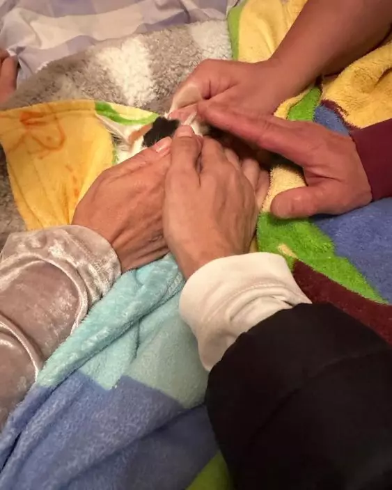 AK在IG限時動態貼了一張握著花花的手,送別牠的照片。