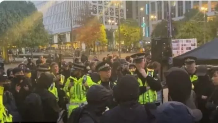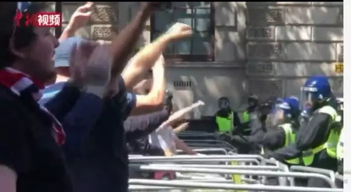 在英國的「黑衣人」於示威中與警察對峙。在新法例下,英警對鎮壓激進示威不會手軟。