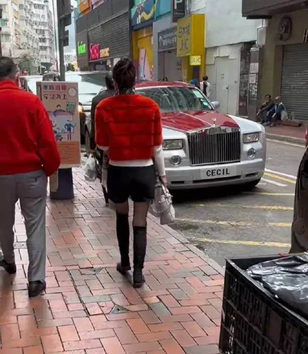 該名女子目測年齡約3-40歲,除了紅色外套之外,她穿上黑色短裙配長靴,頸上戴了名牌頸巾,加上黑色太陽眼鏡,是典型的「貴婦Look」,有網民形容感覺似是內地女子。最後她提著購物袋與趙世曾一起登上名車座駕離開。影片全程未見有保鑣同行,亦沒有大排場,行動相當低調。