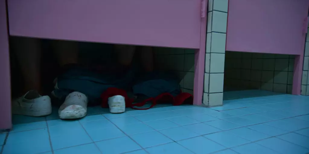《魷魚遊戲》劇集中奸角張德秀與韓美女在廁所內的一幕令人印象深刻(Netflix劇集截圖)