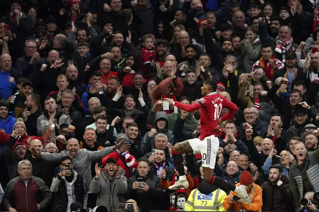拉舒福特慶祝入球。AP