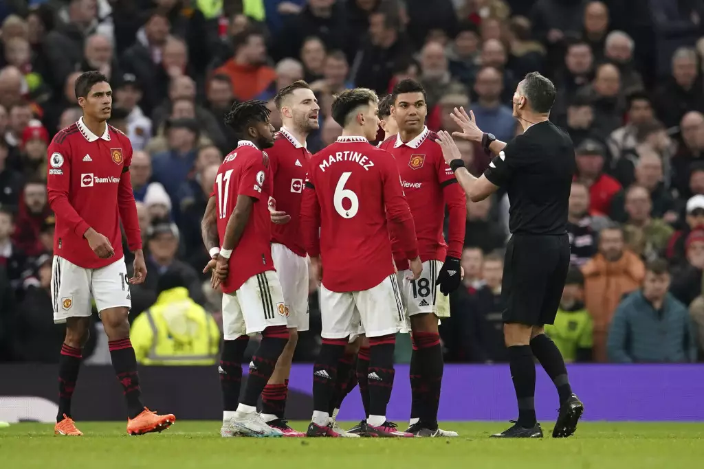 曼聯球員找球證理論。 AP