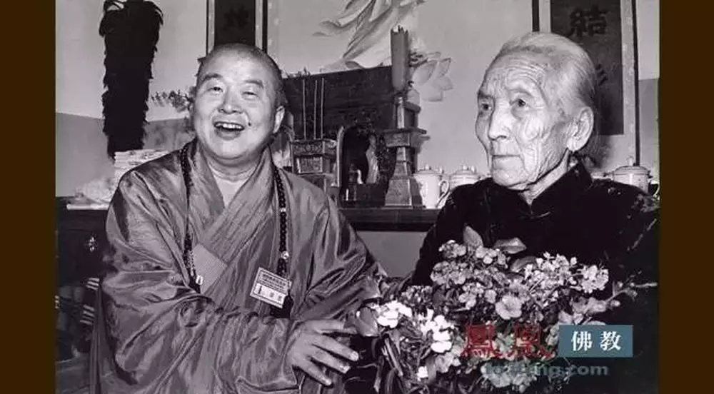 1989年,星雲大師與母親合影。