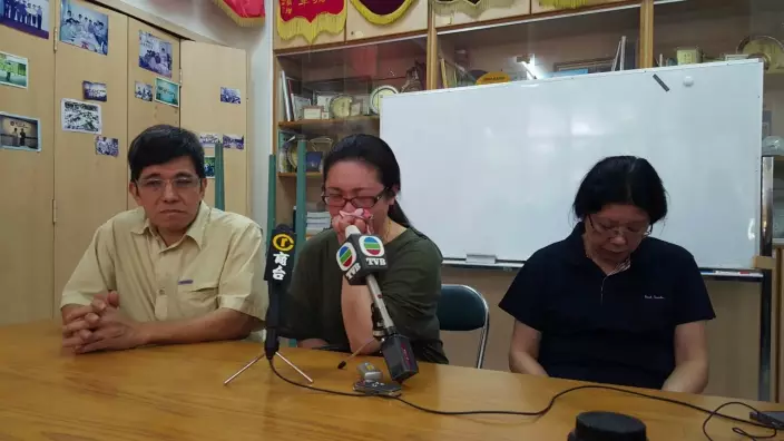 工業傷亡權益會主席陳錦康及陳木完的遺孀(本網記者攝)