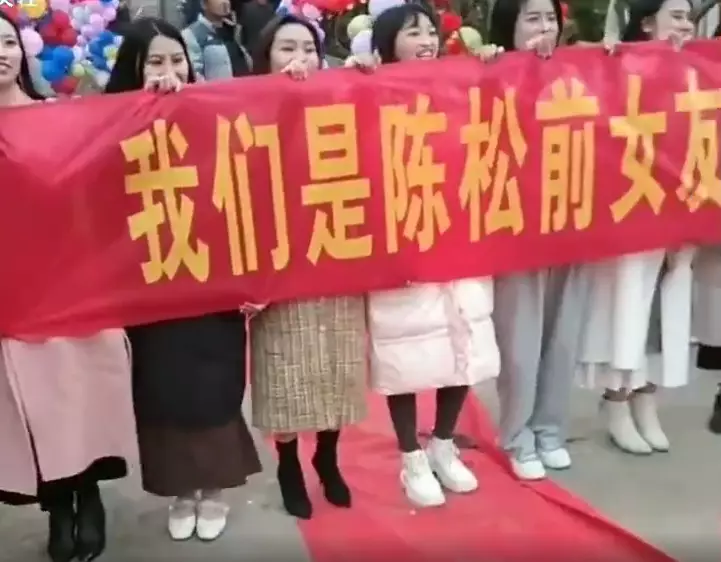 從網上片段可見,這班「前女友」拉起標語為「我們是陳某前女友團隊,今天我們一定把你搞報廢」的橫幅,眾人站在兩位新人的面前,新娘新郎看到橫幅後,面露尷尬笑容,顯得「不知所措」,周遭許多親友亦不知如何反應。