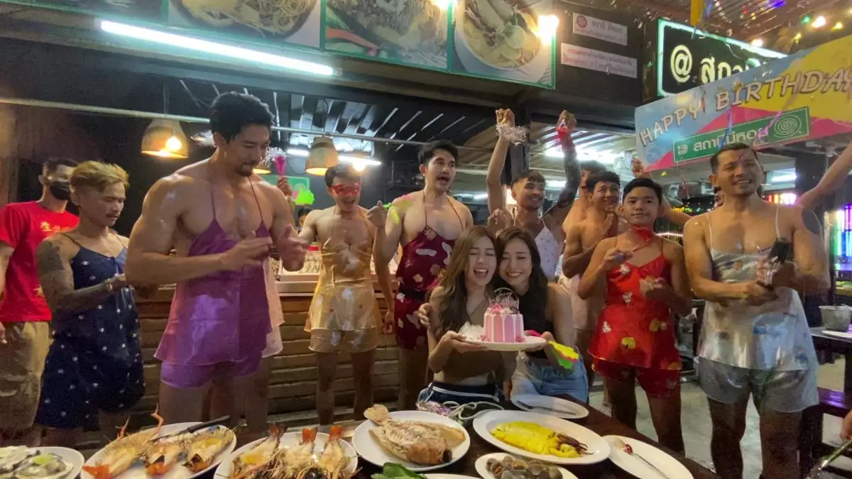 現場所見,一眾穿著女性睡衣的猛男,不但向Stephanie大唱生日歌,更拉晒Banner兼手持花炮,氣氛熱鬧,全程明顯受寵若驚的Stephanie,在社交網留言:「今日經歷咗暫時係人生最瘋狂嘅生日,超級驚喜,笑到見牙唔見眼。」之後受訪時更坦言害羞:「真係好驚喜,我當日淨係知道要去夜市拍攝,完全冇諗過大家會為我準備咁多嘢,好多謝大家。對住一班咁性感嘅猛男都有啲招架不住,好怕醜。」