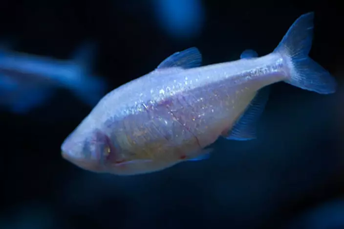 盲魚在分類學上隸屬於脂鯉科、墨西哥盲眼魚屬,是一種非常美麗的觀賞魚,體長大約為8釐米,身披亮銀色鱗片,所有的鰭部均呈奶油色。內地貴州師範大學日前組織研究團隊,在貴州盤州市一處黑暗洞穴裡,發現了一條頭長角的盲魚,長相十分特別,進行DNA檢測發現此為新物種,由於牠長年生長在黑暗環境中,因此眼睛幾乎退化,主要靠觸鬚感知,而頭上的角則有導航的作用。