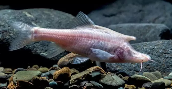 近日,微博自然生物科普網紅「黑魚周cnWATERS」發文分享,指貴州師範大學周江教授組成研究小組,在盤州山區洞穴小池子裡發現一條「盲魚」,身長約10至15cm。由於牠生活環境幾乎沒有光,所以眼睛特別小,甚至已經退化,全身呈現肉色,嘴旁有兩對觸鬚,頭上還有一根獨角,進行形態學分析及DNA檢測,發現牠屬於全新物種。
