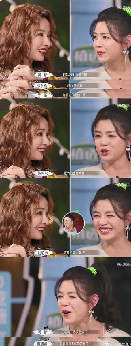 陳曉與劉亦菲合作的電視劇《夢華錄》好評不斷,劇中吻戲亦令人看到臉紅耳熱,但陳妍希卻表示:「我沒看到」,因為這部劇只追了10集,笑說是因為老公不讓她看後面的劇情。之後陳妍希又被問到最喜歡老公陳曉的哪對電視劇情侶組合,她認真地表示:「我可能嗑他跟王一博吧,兄弟情。」這答案獲得主持人讚賞:「這個答案真的滿分。」