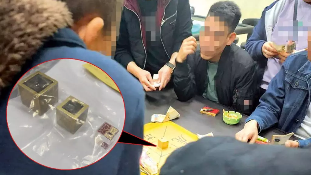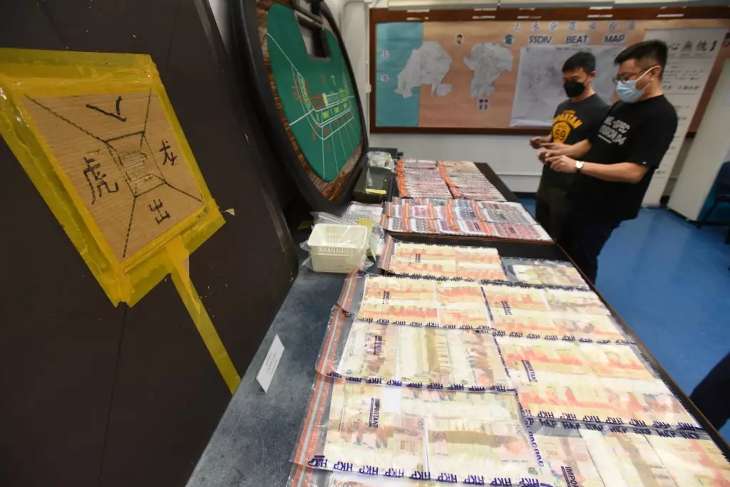 其中一個撿獲的賭具,便是專為潮州及福建水貨老闆而設的「暗寶」賭法,枱面設入、出、龍、虎四面,附五種玩法。