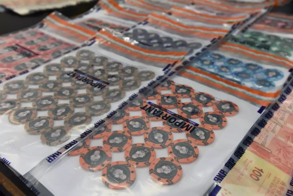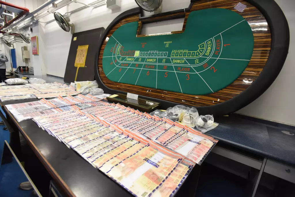 警方在行動中撿獲大量賭具,包括百家樂、牌九、啤牌等賭桌。