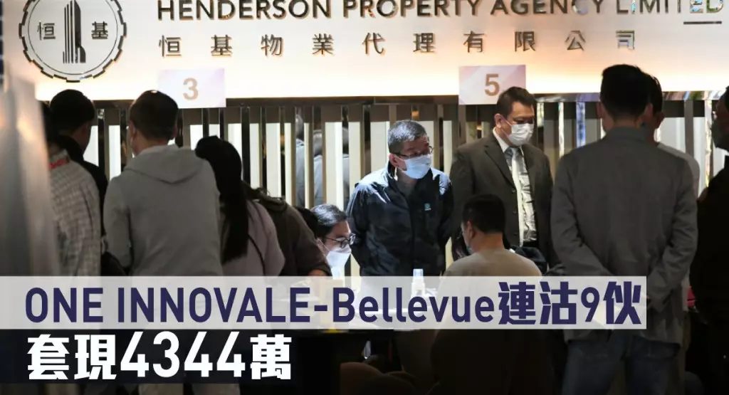 恒基發展的粉嶺ONE INNOVALE-Bellevue,今日推售82伙,消息指,項目暫沽9伙,套現4344.03萬。