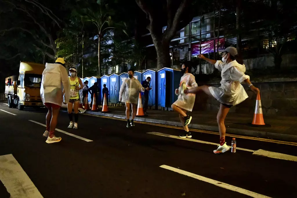 【12:00】大會的醫療事務總主任林建群進一步更新,截至早上11時有31名跑手不適送院,全部人情況穩定。他指出,由於12日天氣潮濕難散熱,有跑手出現體溫過高或熱衰竭,亦有跑手頭暈。另外,由於12日路面濕滑,部份跑手扭傷送院。