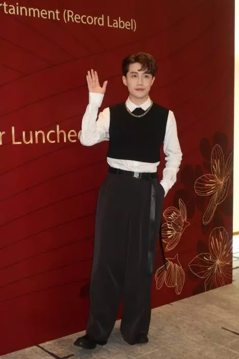新人華浩然、施匡翹及謝高晉出席臻世娛樂春茗團拜午宴。