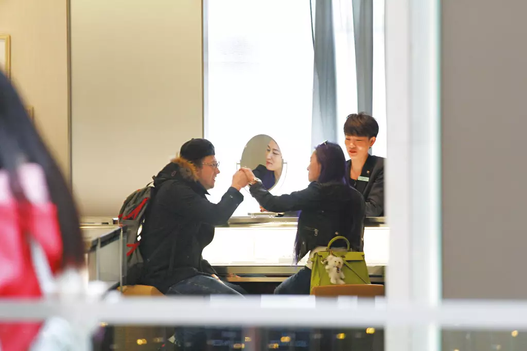 張致恒在2016年情人節更向莊韻澄求婚成功,兩人還一同到金鋪睇金器。(東周刊圖片)