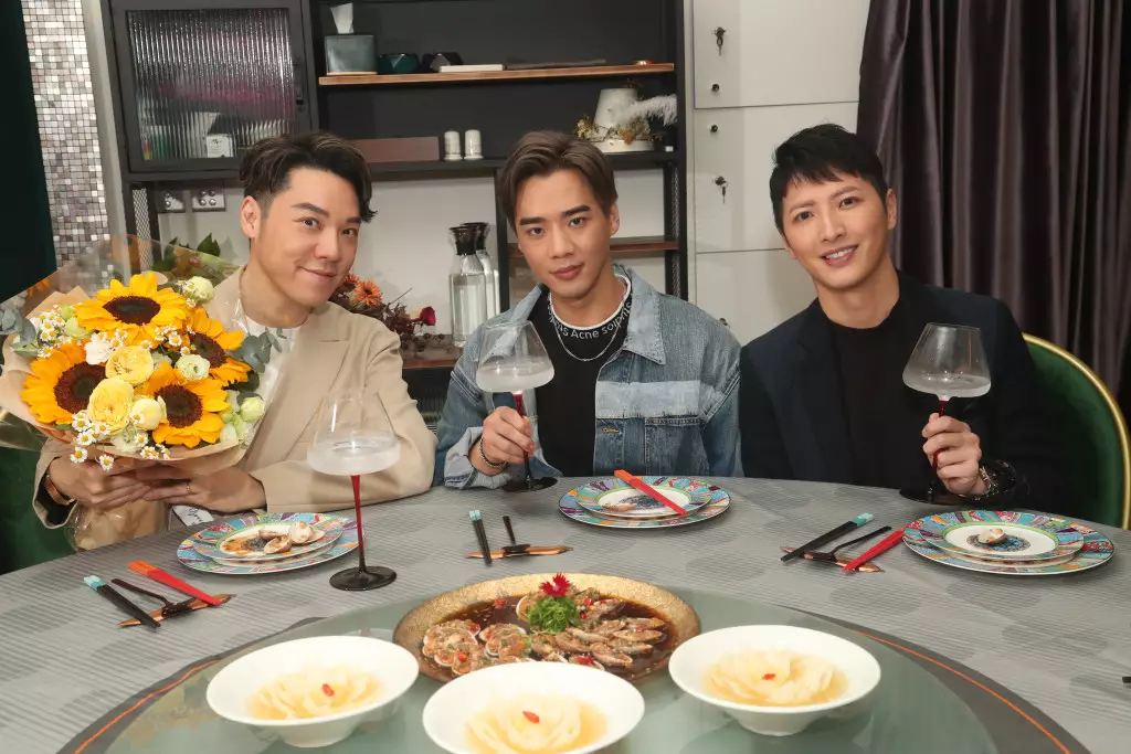 Kenny(中)為Ray(右)煮情人節餐,並送上花束畀Vinci(左)謝媒。