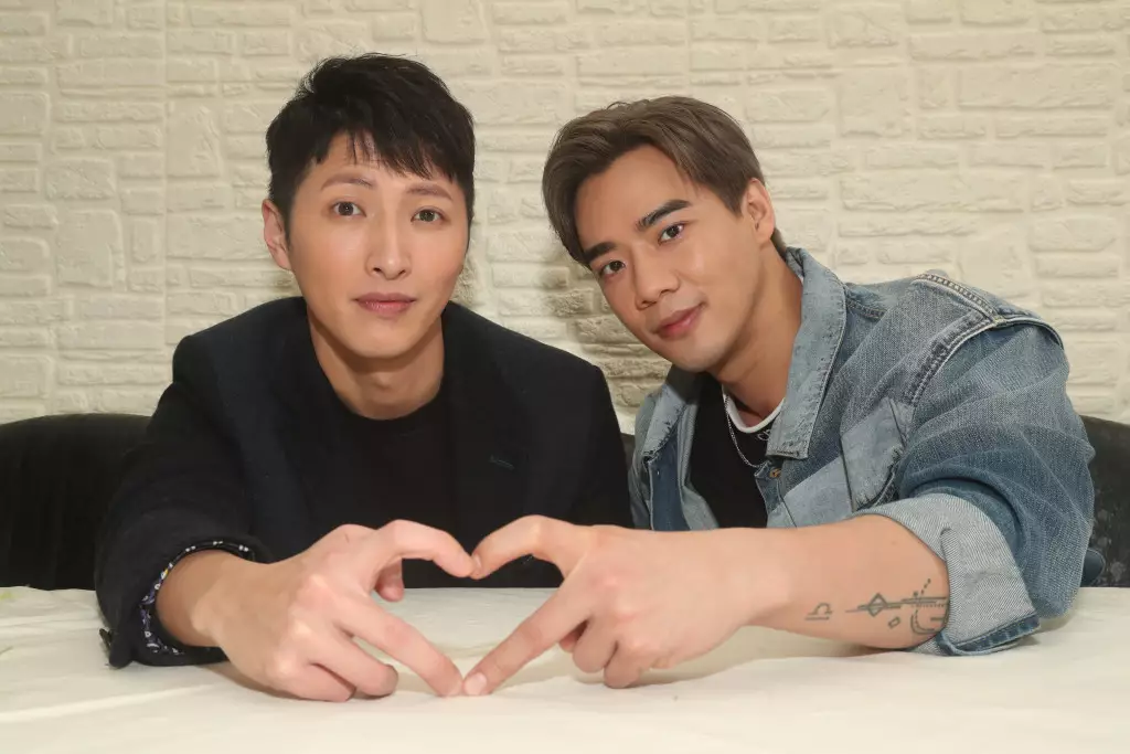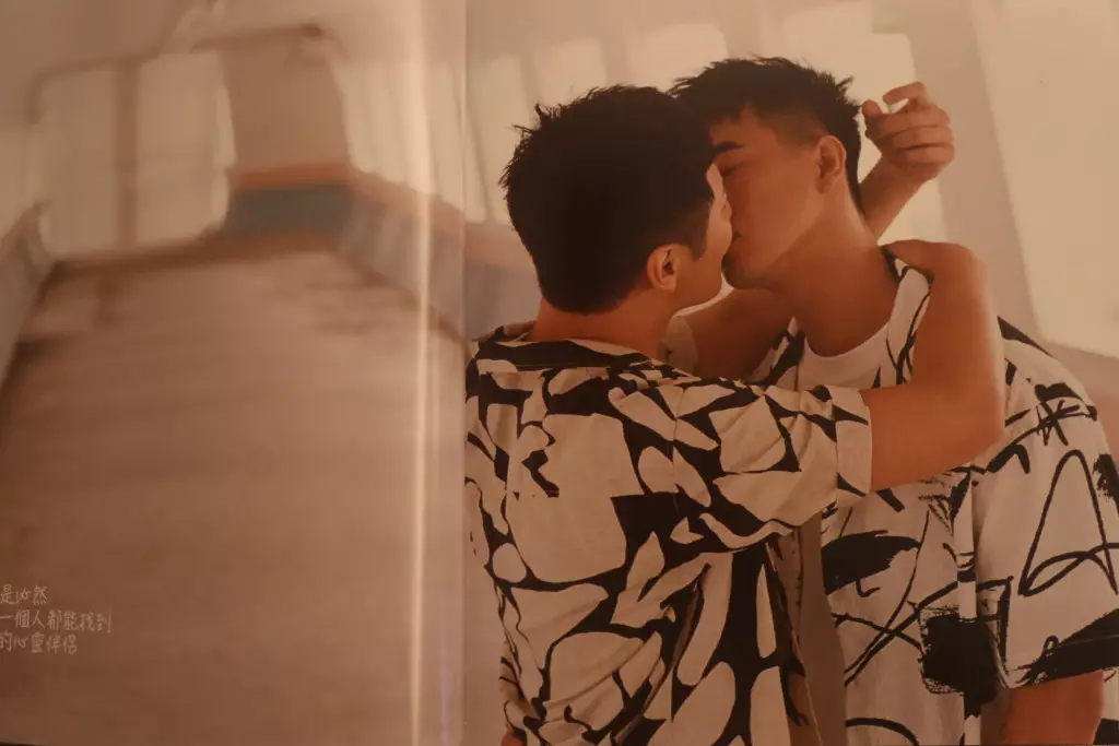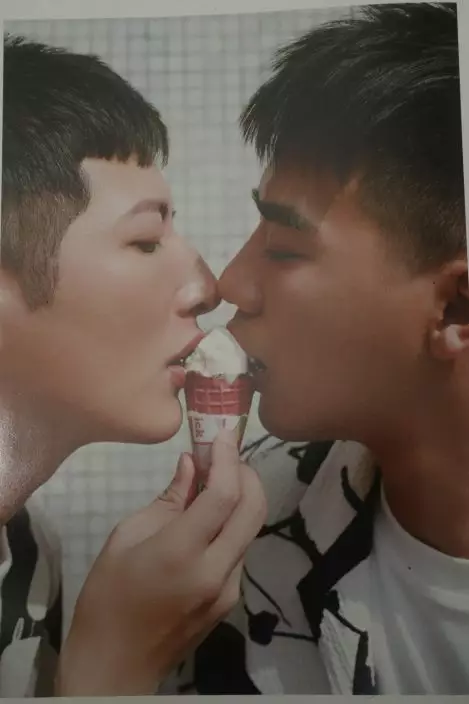 慈善寫真集《Pride in Action》中Ray(左)及Kenny(右)鼻尖貼鼻尖,哄到好埋食雪糕。
