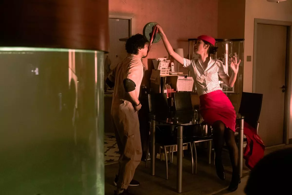 電影故事牽涉大廈內多個住戶,其中有由毛舜筠、黃又南、Jennifer、楊偉倫及劉映汝主演,每天吵鬧的杜家。其中一場戲,講述因疫情失業的前空姐 Jennifer 本想藉著母親毛舜筠替她湊女兒返學校,趁機穿起空姐制服加上黑絲襪,與老公又南享受甜蜜的二人世界,怎料毛姐與囡囡二人突然提早回家,令到二人世界落空,Jennifer與又南也難掩失望。