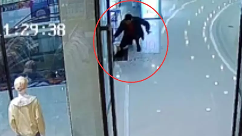 網片顯示,男子傷女子後,將女子拉拽至電梯口,繼續施襲。 網圖