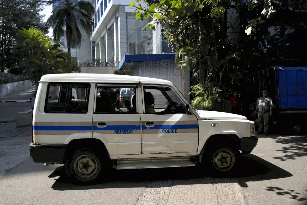 一輛警車離開BBC孟買辦公室。 美聯社