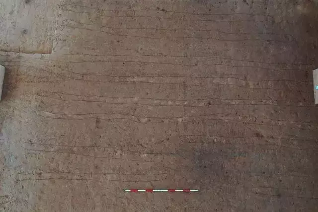 這是在櫟陽城遺址漢代農田遺跡中發現的犁溝。