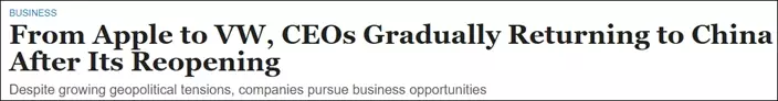 報道認為,高管訪問突顯出,盡管地緣政治緊張局勢加劇,西方公司仍在尋找中國重新開放帶來的商機。對於一些高管來說,實地考察當地業務並與經理會面是優先事項,而更多人喜歡會見當地的業務合作夥伴和政府官員。