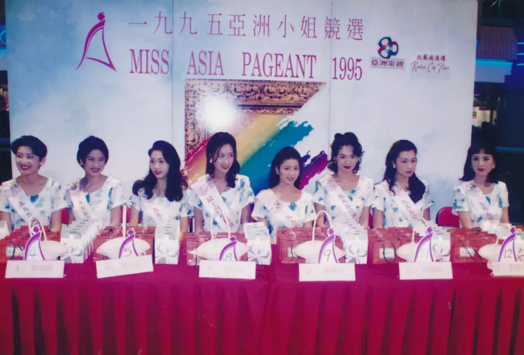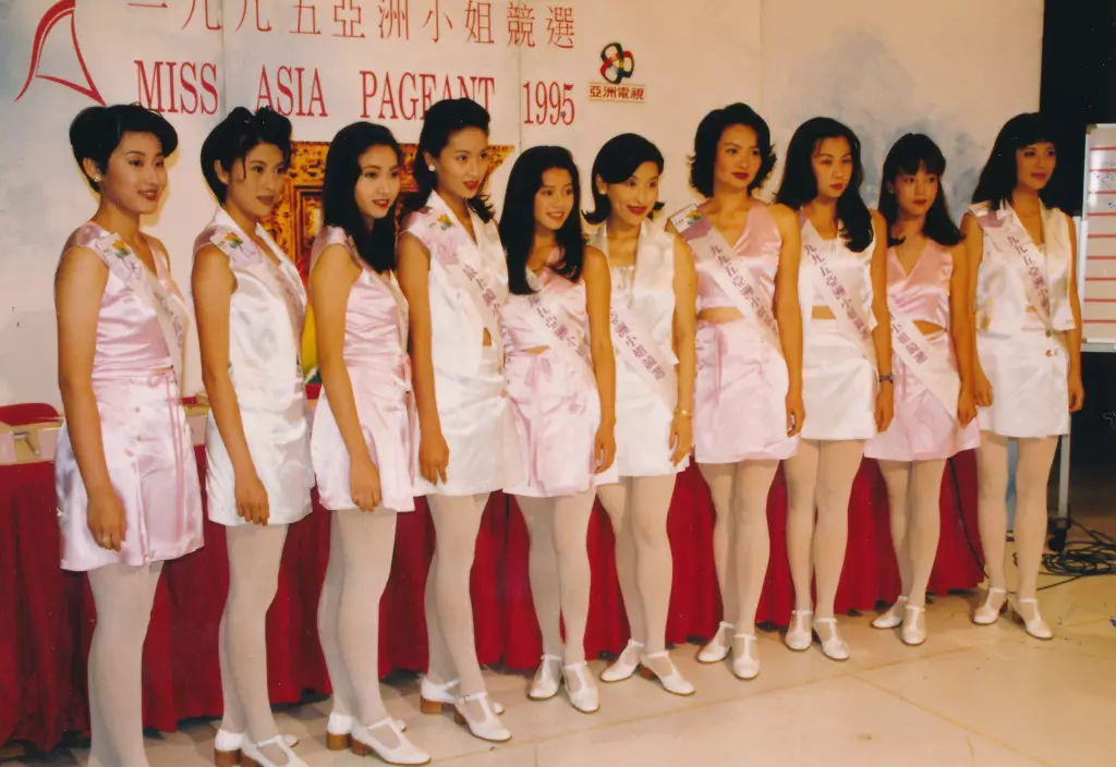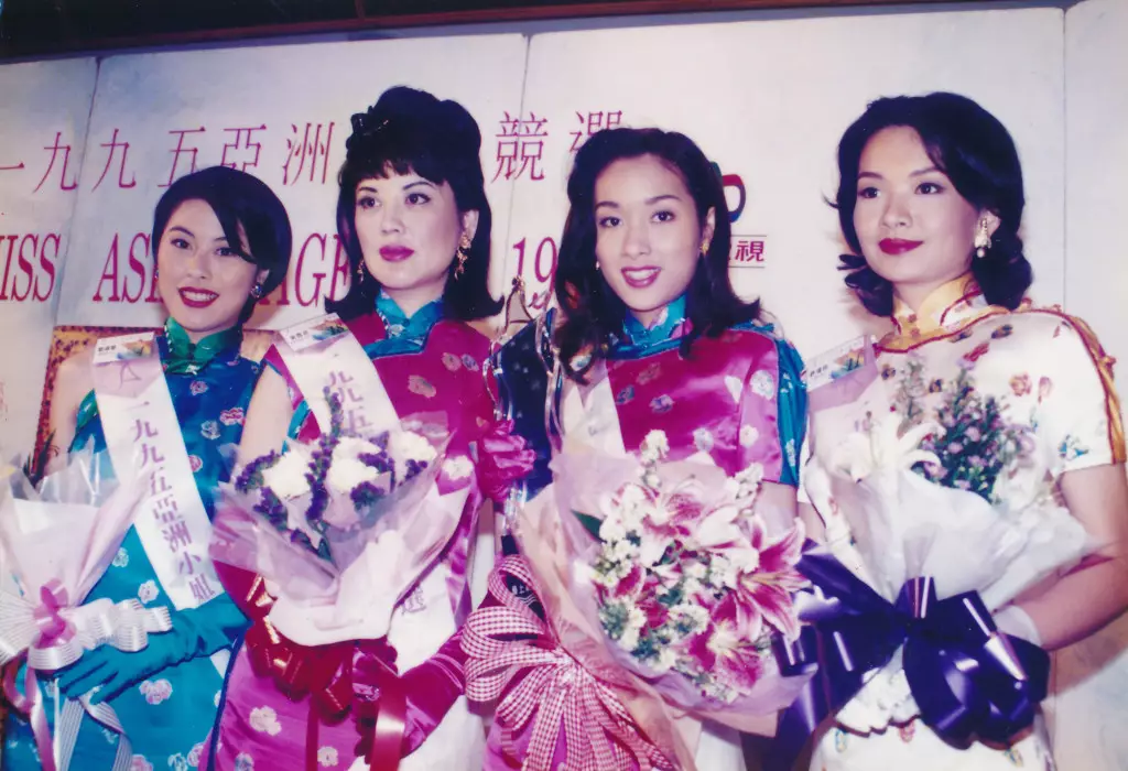 1995年度亞洲小姐競選冠軍楊恭如(右二)、亞軍黎淑賢(左一)、季軍黎思嘉(右一),宮雪花則獲得「最受傳媒關注獎」。
