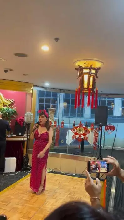 現年74歲的宮雪花最近被澳洲網民拍到,在悉尼一間酒樓出席活動,以一身桃紅色吊帶連身裙出場的她,盡騷4吋深長事業線,雖然有不少網民讚嘆她保養得宜,狀態極好,完全不像年近75歲的老人,但卻有人嘲諷化上濃的她像蠟像。2月14日再有宮雪花當日登台的片段流出,宣稱單身的她更向現場單身男士索取卡片!
