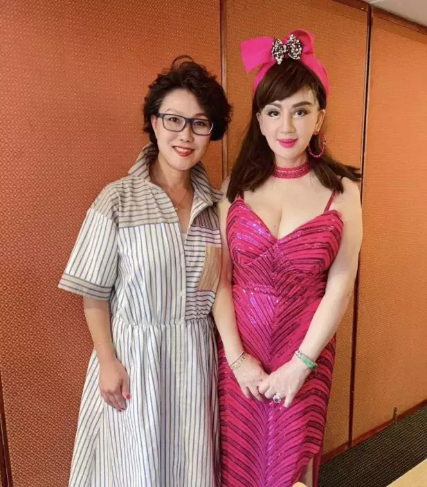 當時宮雪花(右一)雖然已經年近半百,但依然保養得宜。