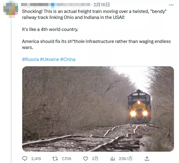 列車脫軌頻繁到「遍地開花」,後知後覺的美國網民不禁長嘆一口氣:「想知道2023年了火車還能怎麼脫軌嗎?來看看這個……」「求求了,把這該死的鐵軌修一修吧!」
