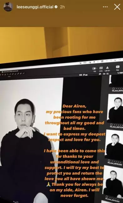 李昇基在2月18日分別用四種語言,以中文、英文、日文及韓文在個人社交平台上向粉絲表達感謝,文中寫道:「尊敬及親愛我Airen(李昇基粉絲名稱),因為我是個不太善於表達的人,所以未能向大家表達真心。我想向在任何時間都給予我信任的粉絲們表達深深的愛意及感謝,在大家的關愛下,我才能走到今天。為了不辜負你們給予的愛,我會更加努力砥礪前行。我會守護我的粉絲們、珍惜每一位愛我的粉絲。請以寬容的心支持我!我會一如既往地感恩你們。祝你們幸福 Airen !」