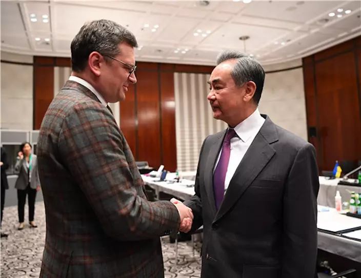 在慕尼黑,王毅對庫列巴說,中國和烏克蘭是戰略夥伴,兩國人民有著長久友好交往。中方再次感謝烏方在緊急狀況下協助中方順利開展撤僑行動。讚賞烏方始終堅持「一中原則」。希望兩國關係繼續穩定發展。