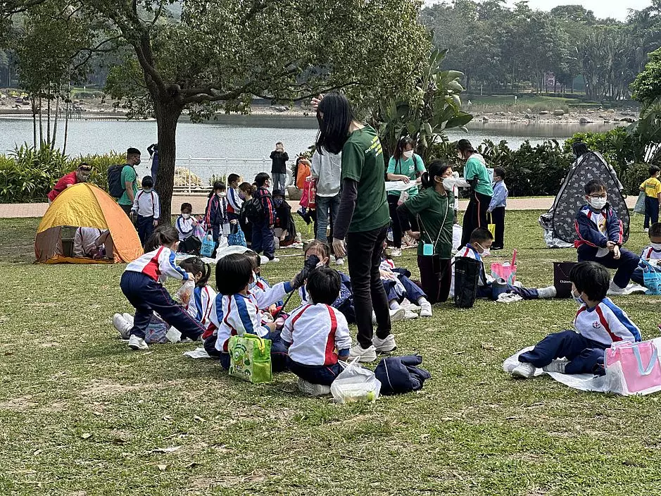荃灣路德會聖十架學校成功籌辦數百名校內學生乘旅遊巴到迪欣湖戶外午餐。