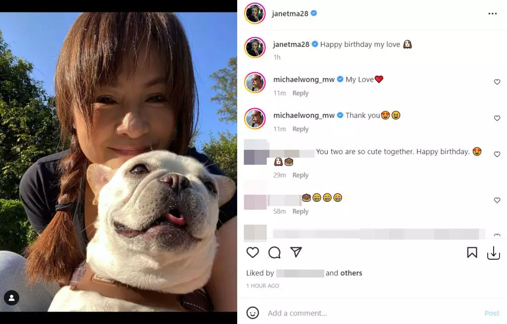 馬詩慧在IG晒出近鏡自拍,懷中是壽星愛犬,留言表示:「Happy birthday my love.」馬詩慧紮孖辮上陣,對鏡頭露出可愛甜笑,有網民都留言讚她與愛犬一樣可愛。而型男老公王敏德更是秒Like太太的新相,亦留言表示:「Thank you.My Love.」