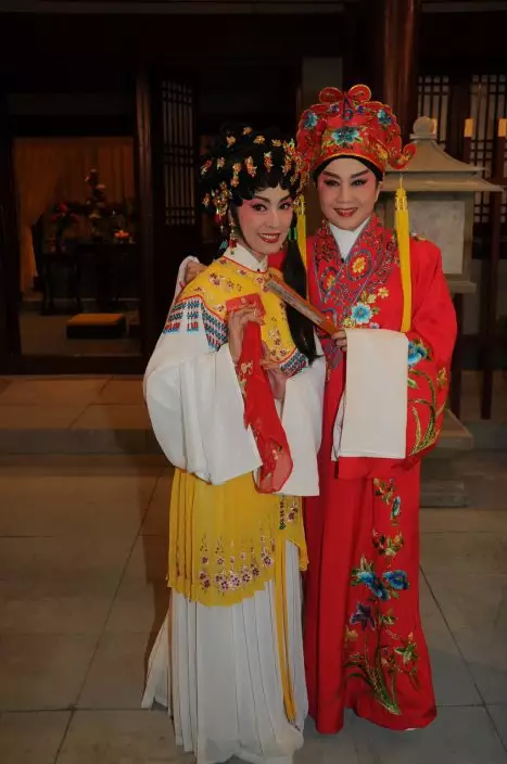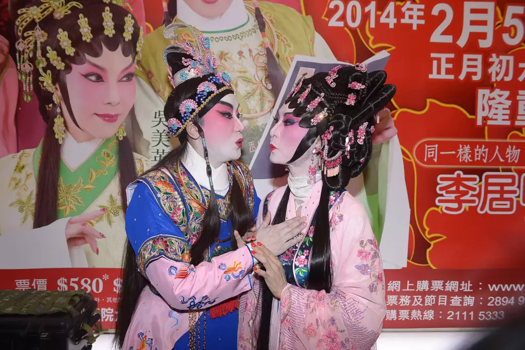 米雪近年多次參演粵劇,曾與蓋鳴暉(左)演出。