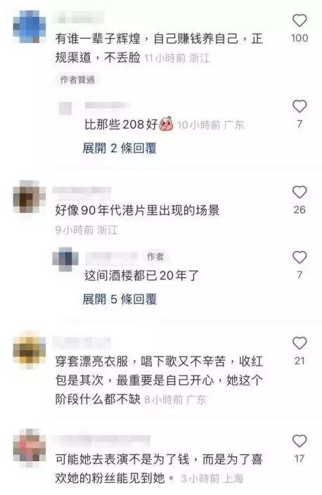 參加米雪登台活動的網民貼出多張米雪演唱的照片,留言說:「小時候看她的戲,在屏幕上見到的她很文雅,昨天現場看她的表演,覺得很風趣、隨和,就是可惜沒能跟她握手合照。」並透露當日米雪演唱《漫步人生路》開場,大受歡迎的米雪,還在相中見到收到不少利是。米雪出現引起網民熱議,大讚她保養得宜:「太顯年輕了」、「看起來50多歲,根本看不出60多,保養的很好」、「真是看着年輕」,還有人笑說加上酒樓的背景,「好像90年代港產片出現的場景」。
