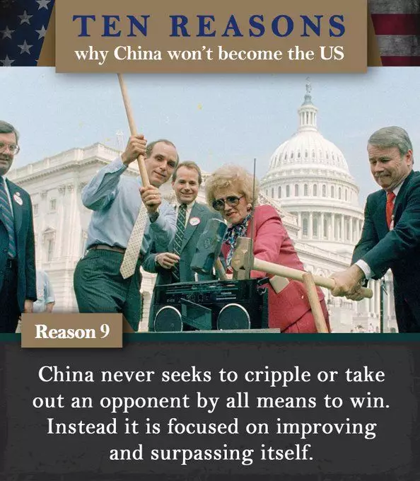 原因九:中國從來不會為了勝利而不擇手段地削弱或消滅對手。相反,中國專注於提升並超越自己。