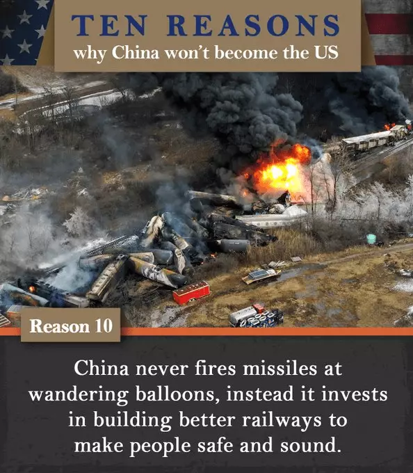 原因十:中國從不向流浪的氣球發射導彈,而是投資建設更好的鐵路,讓人民享受安全和健康。