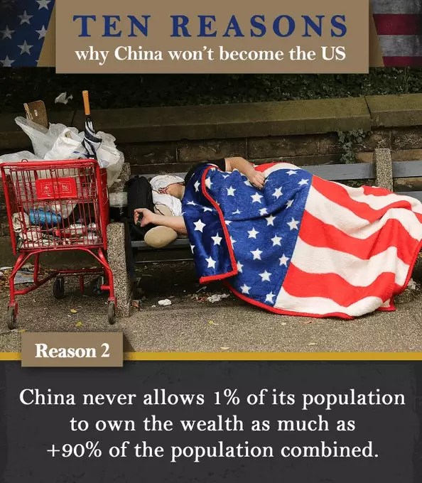 原因二:中國從不允許1%的人口擁有相當於90%+人口財富的總和。
