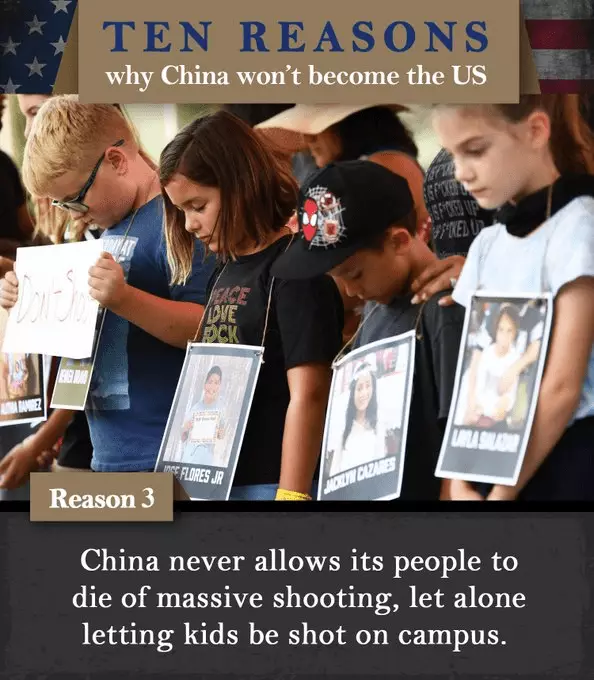 原因三:中國從來不允許其人民死於大規模槍擊事件,更不用說讓孩子們在校園裡被槍殺了。