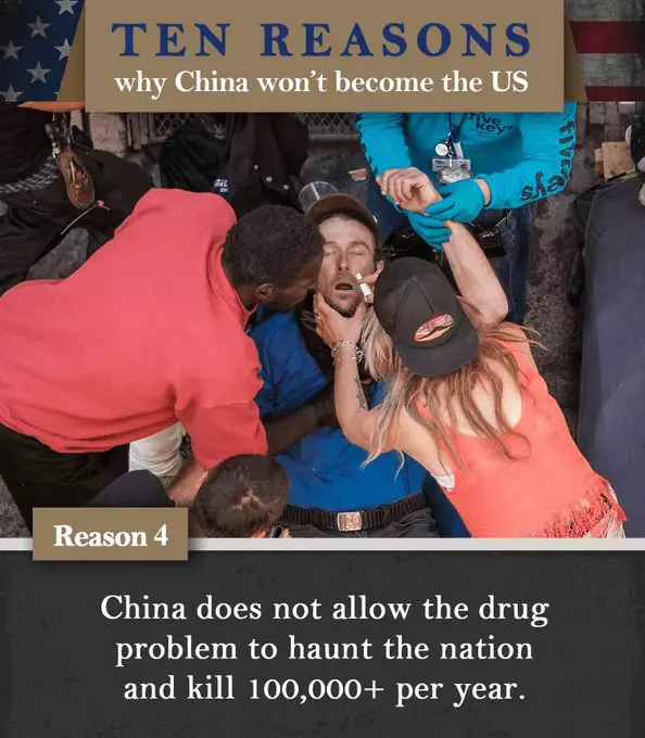 原因四:中國不允許毒品問題困擾國家並每年導致10萬以上的人死亡。