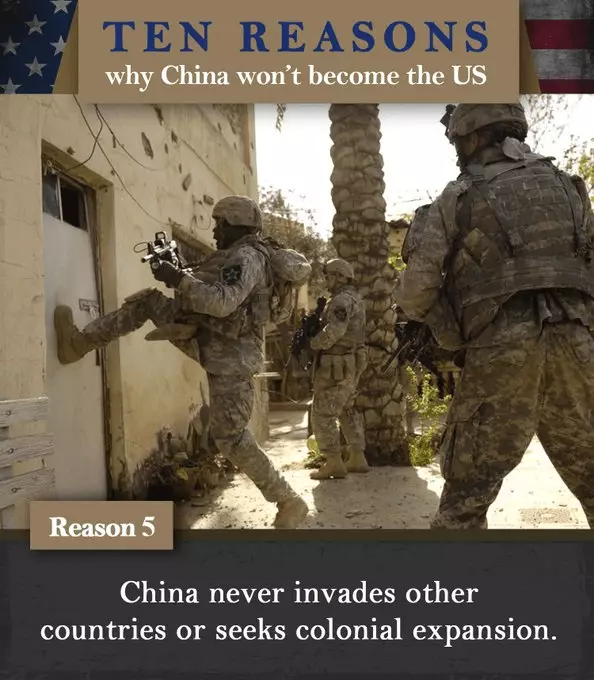 原因五:中國從不侵略別國,不搞殖民擴張。