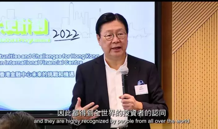 他說香港金融中心發展到今日,正面對兩大挑戰,一是全世界都想「搶」這地位,例如新加坡、杜拜、三藩市等,都欲成為更大的國際金融中心,睇住香港來打。