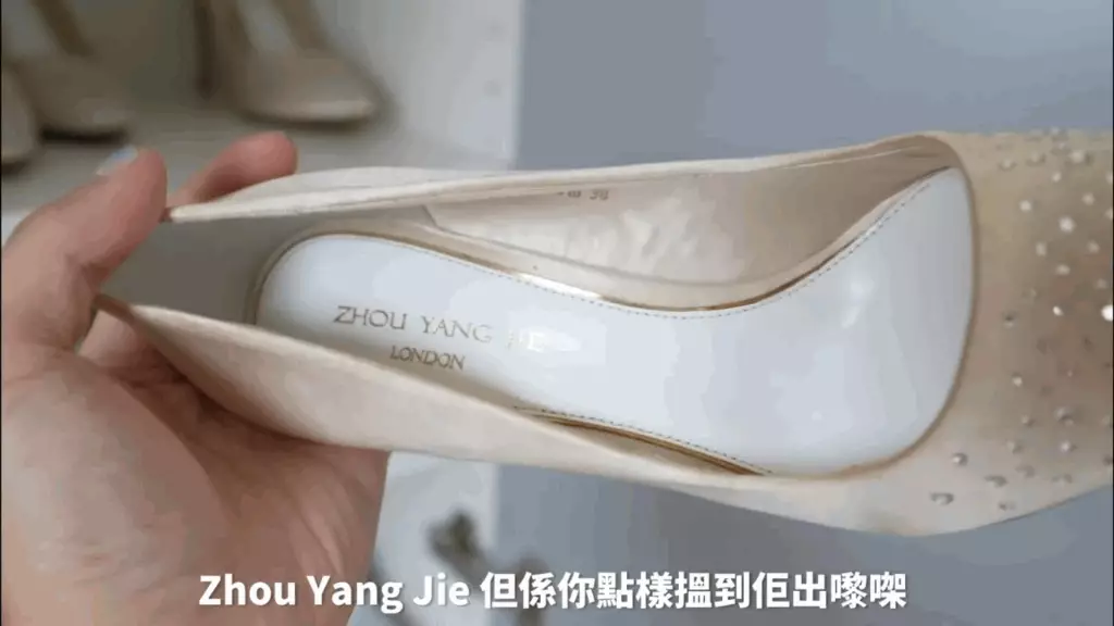 在王君馨的各種珍藏之中,有幾樣對王君馨而言特別有意義,例如其中一雙寫着「Zhou Yang Jie」的高踭鞋,原來是她在一次到馬來西亞獲獎時結識到Jimmy Choo設計師Zhou Yang Jie(周仰傑),更表示對方是主動向她打招呼,令她亦受寵若驚,自此二人交換了聯絡方式,亦有間中相約食飯!及後王君馨結婚時亦有告知對方,更大膽問對方可否為她設計一雙鞋,豈料對方一口答應,更送免費送了她兩雙結婚用高踭鞋:「一對就係嗰日着嘅,你見到有好多着過嘅痕跡,另一對就係收藏嘅!」