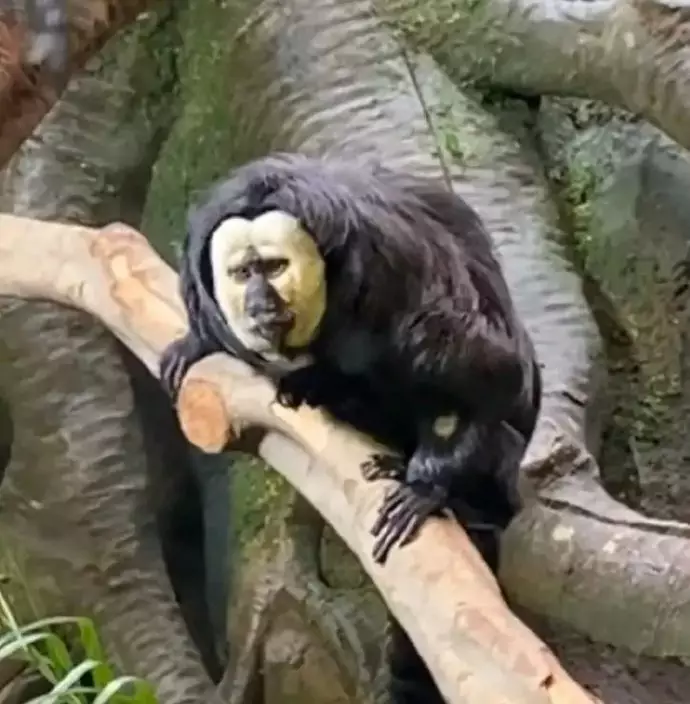 近日有南京網民在紅山森林動物園參觀時,影到一隻長相特別的白面僧面猴,形容「恐怖白臉猴子」。據了解,學名白面僧面猴的猴子,具有圓而略扁的臉龐,布滿短茸毛。牠多生活於南美洲,雌雄兩性外貌大不一樣,雄性通體黢黑,臉白,有人形容就像動漫裡的「無臉男」。而今次走紅的「杜杜」,是雌性呈斑駁的棕色,體型較嬌小。