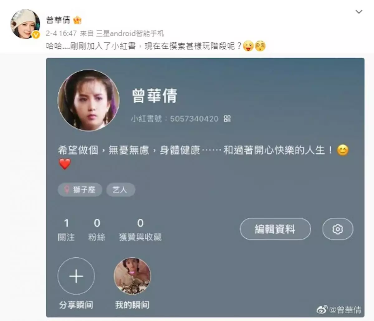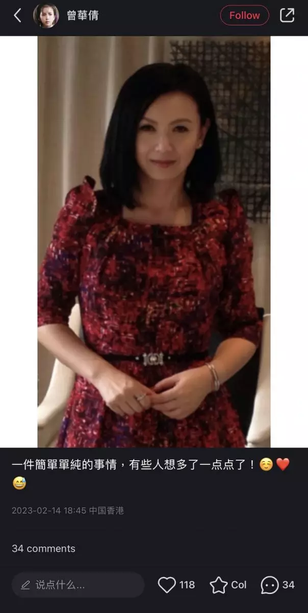 網民都諗緊曾華倩呢一張相有咩用意,又質疑唔係本人account發出。不過,月初時曾華倩才親自喺微博宣布自己進駐小红書。