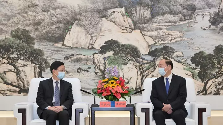 特首李家超率領特區政府代表團到深圳及廣州訪問,獲廣東省委書記黃坤明,省委副書記、省長王偉中會見,雙方就深化粵港務實合作、推進大灣區建設進行深入交流。 省領導張曉強、張新亦有參加今次會面。