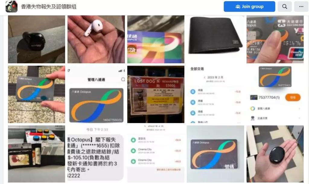 在社交平台中,不難發現有大大小小的失物認領群組,如有網民不慎遺失個人物件,都會到這類群組尋找失物。在眾多失物當中,以手提電話、耳機以及八達通卡居多。