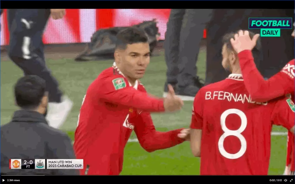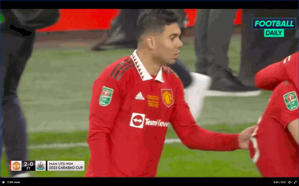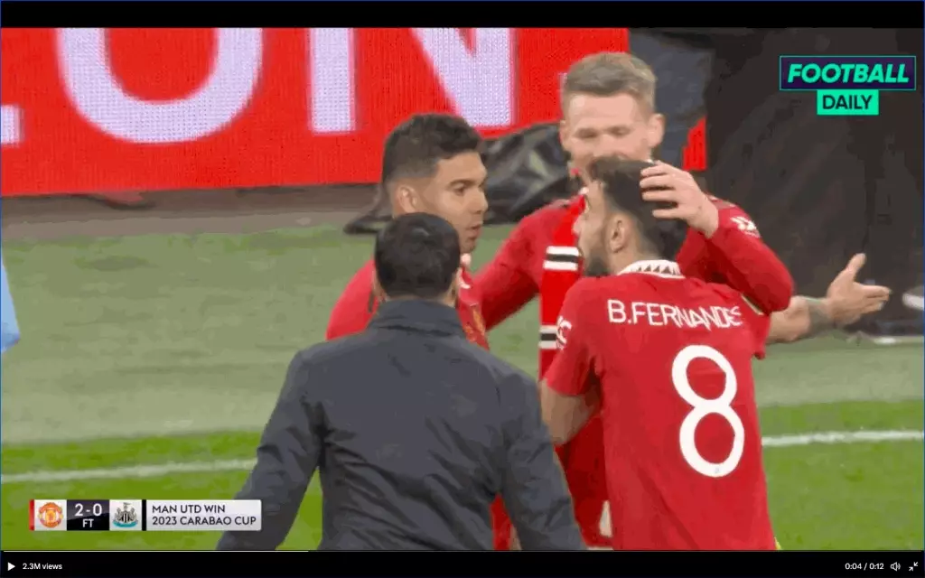 從片段所見,在球證鳴笛後,曼聯眾將都在慶祝,然而入球功臣卡斯米路卻捉住正在慶祝的般奴費南迪斯,一臉嚴肅地與對方說話,後者亦認真地回應對方,之後麥湯米尼在旁邊即叫兩人放鬆點。雖然不知真實內容,但估計卡斯米路是在質疑般奴為何於完場前的黃金機會沒有傳球給併置更好的隊友,反而自己起腳。